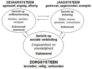 Minder vasthouden aan ‘volhouden’ geeft, na een vaak onrustige overgangsfase, uiteindelijk ruimte voor een ruimer bewustzijn. In termen van de polyvagaaltheorie: je verschuift van een overactieve sympathicus naar meer regulatie via het ventrale vagale systeem—voor wie dat aanspreekt. In termen van emotionele regulatiesystemen: je verschuift meer van het gevaar- en jaagsysteem naar het zorgsysteem.